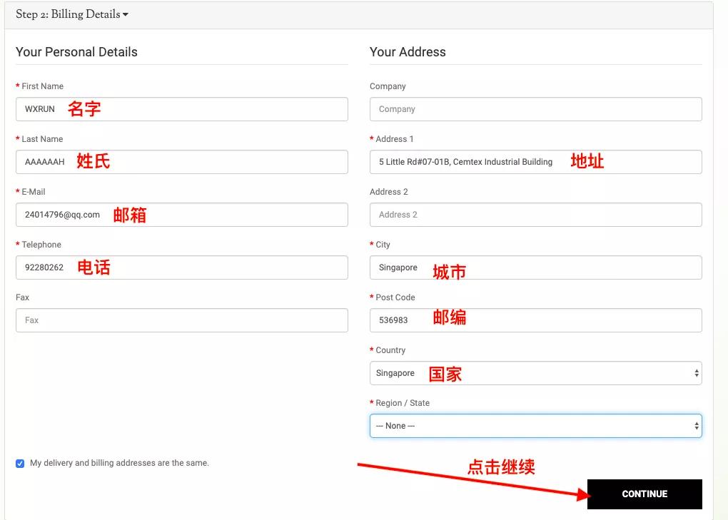 填写当地的收货地址,可在www.52hbl.com 点击仓库地址,搜索新加坡查看